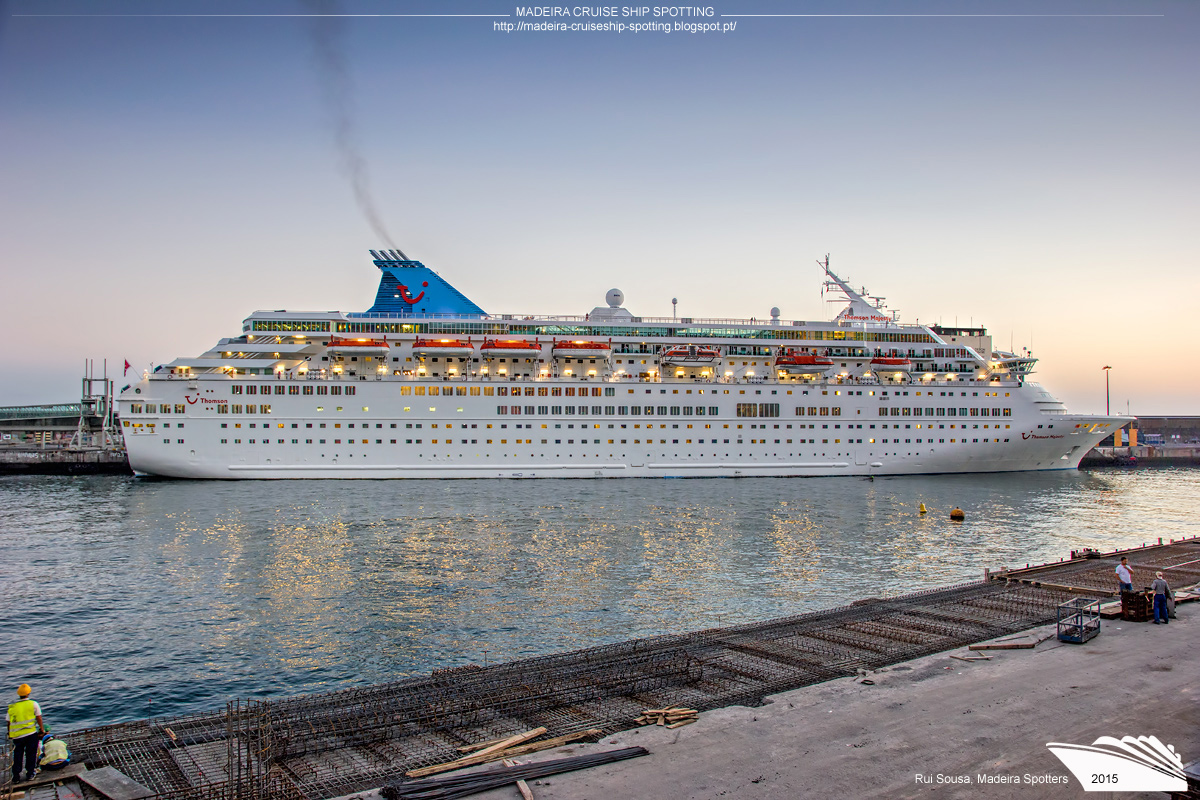 | Thomson Majesty ao anoitecer. Tinha partida prevista para as 20h, em direcção a Lanzarote. |