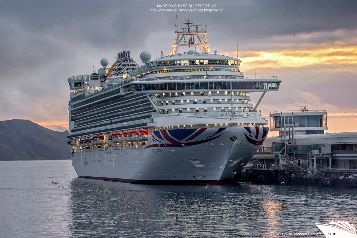 | ao seu lado, o Ferry Lobo Marinho, da PSL, que faz as ligações inter-ilhas Madeira - Porto Santo e ao fundo, fora de vista, o AIDAsol |